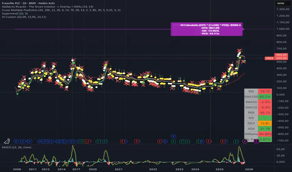 Cross Prediction (Predictive): Identifies when the oscillator lines (MACD, RSI, Stochastic) are very close and converging towards a cross, suggesting that a real signal might occur soon.