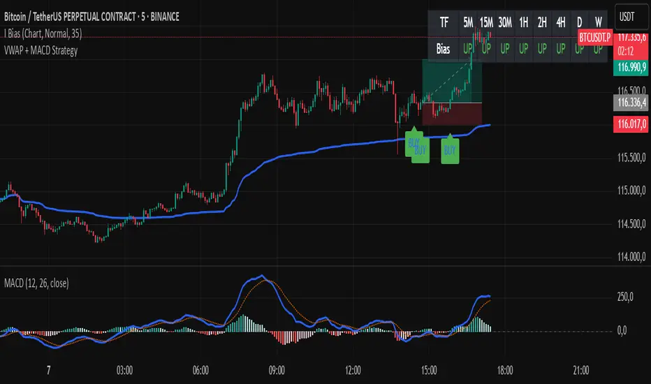This indicator combines the VWAP (Volume Weighted Average Price) with MACD (Moving Average Convergence Divergence) to create buy and sell signals. It helps traders identify potential market entry and exit points based on price action and momentum.