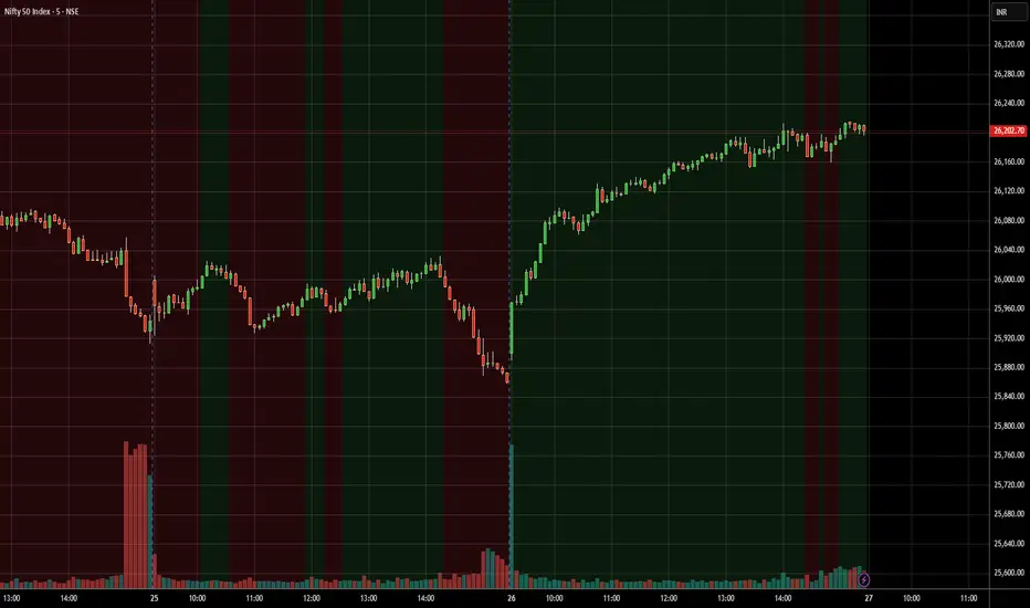 This creates an easy-to-read, color-coded backdrop that helps traders instantly identify trend bias without cluttering price action.