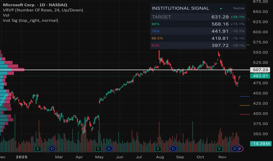 Entry Points: You are waiting to enter a position. You set limit orders at the Green (90%) or Blue (70%) lines, knowing these are math-based discount levels relative to the company's fundamental valuation.