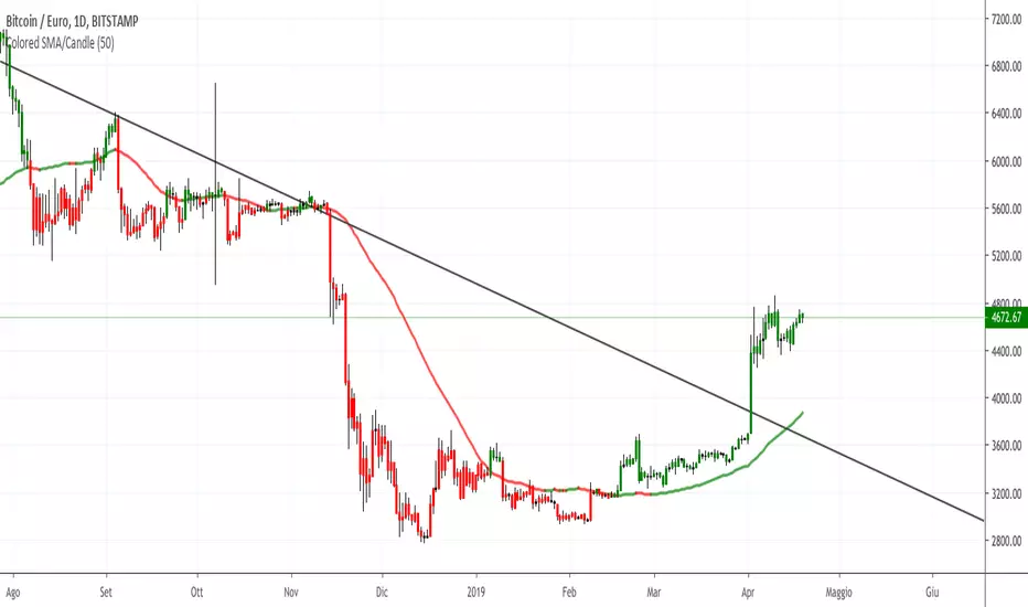 This Script plots a Simple Moving Average green coloured when the slope is positive and red coloured when it's negative, it also prints all the candle with the close value greater than the average in green and those with the close value smaller than the value of the average in red. Useful for spot the entries and exits at a glance.
