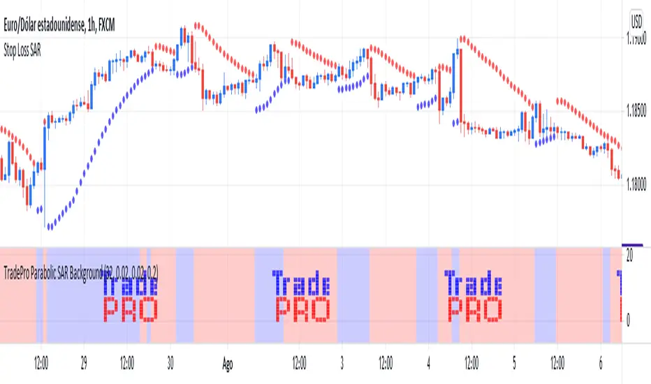 The operation is simple. It is the same Parabolic SAR indicator with its default configuration, but in background format. It is a new way to visualize the same information, more understandably. It is in itself a complete trading system, it can be used in conjunction with the traditional Parabolic SAR to locate the stop loss.