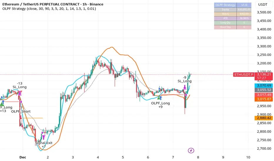 The Octavio Low-Pass Filter (OLPF) is an advanced Finite Impulse Response (FIR) low-pass filter designed for financial time series analysis. It builds upon the foundational work of the New Low-Pass Filter (NLF) by Alex Pierrefeu, introducing three key enhancements that significantly improve signal quality and reduce common filtering artifacts.