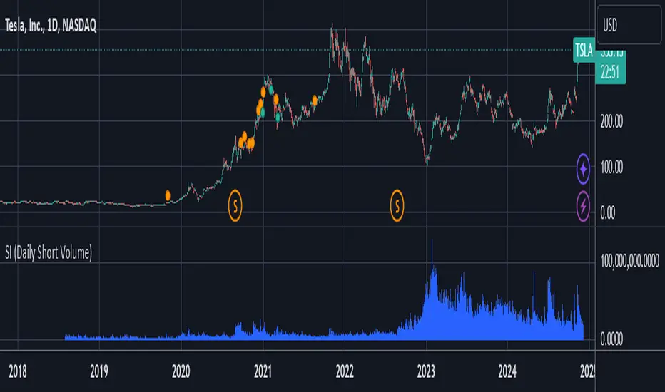 Calculated based on the symbol lookup for short data at Quandl (Example TSLA: FINRA/FNSQ_TSLA )