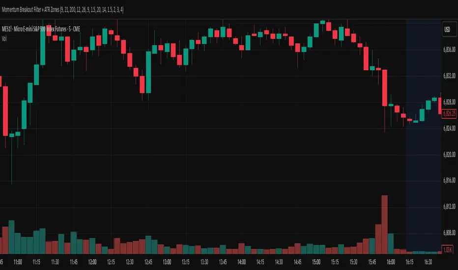 ItemWhat It ShowsVolumeCurrent volume vs average (✓ HIGH or ✗ Low)MACDDirection (BULLISH or BEARISH)TrendEMA alignment (BULL, BEAR, or NEUTRAL)ATRCurrent ATR value in dollarsPositionCurrent position (LONG, SHORT, or NONE)R:RRisk-to-Reward ratio (shows when in position)