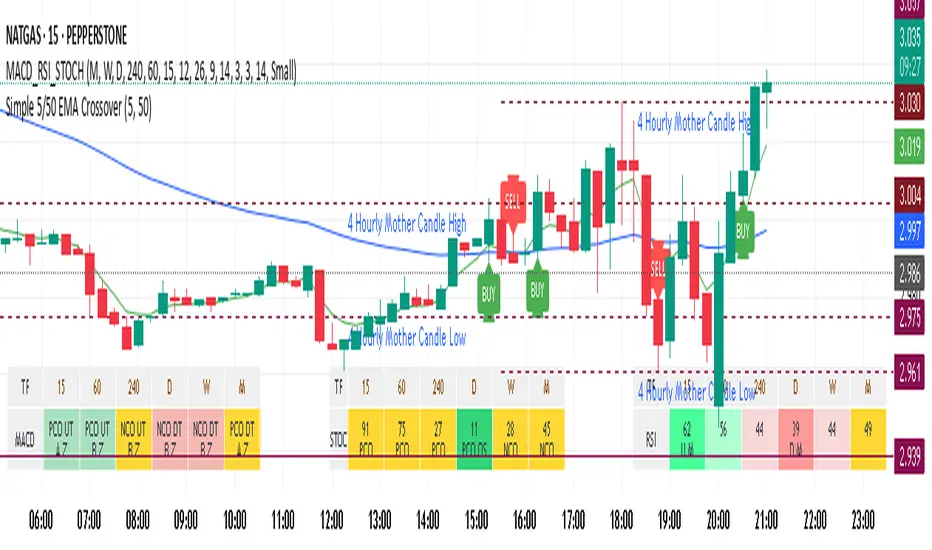 This plots 5 EMA and 50 EMA with crossover Buy/Sell signals