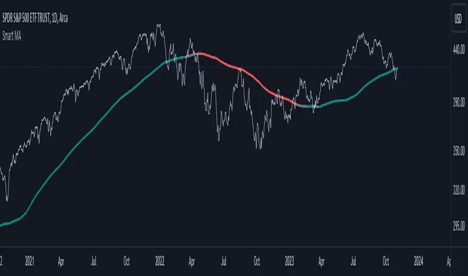 Conversely, if the fast MA crosses below the slow MA, the base MA line's color may alter to represent a bearish sentiment (e.g., red). This color shift provides a visual marker for a potential bearish trend, potentially guiding traders towards shorting opportunities.