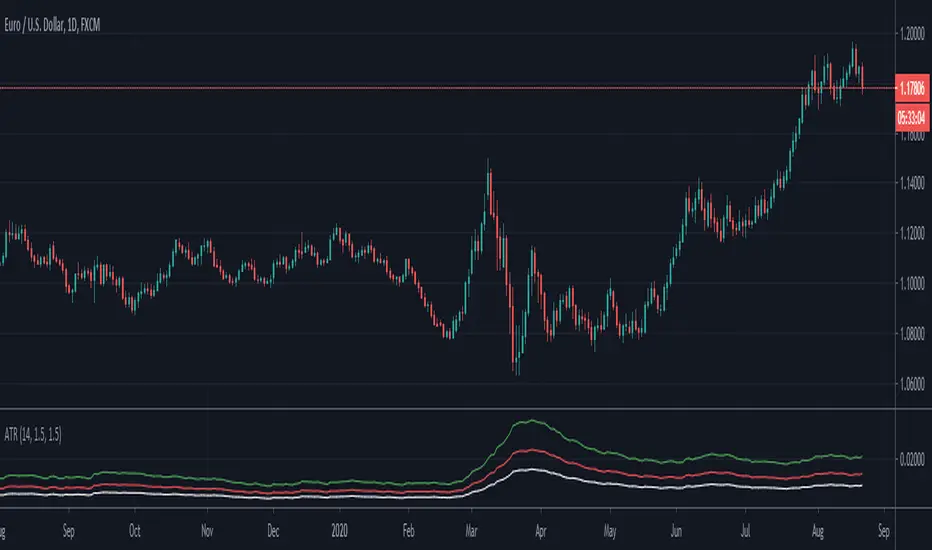 Here you can choose to plot 3 different ATR values in 1 window. I use this indicator to get the values of my stop loss and take profits.