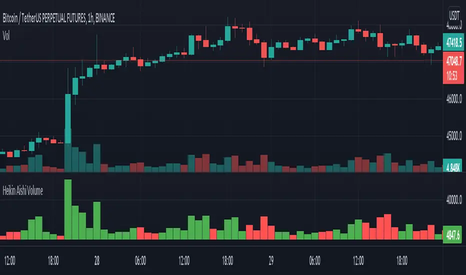 As you all know the color of the volume depends on the open and close of the current and previous candle. So this indicator will give different color result when used on regular candles...