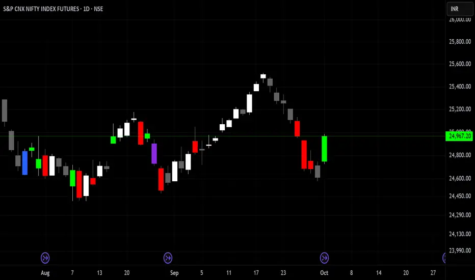 - Reversal Detection - White/violet candles often mark exhaustion points