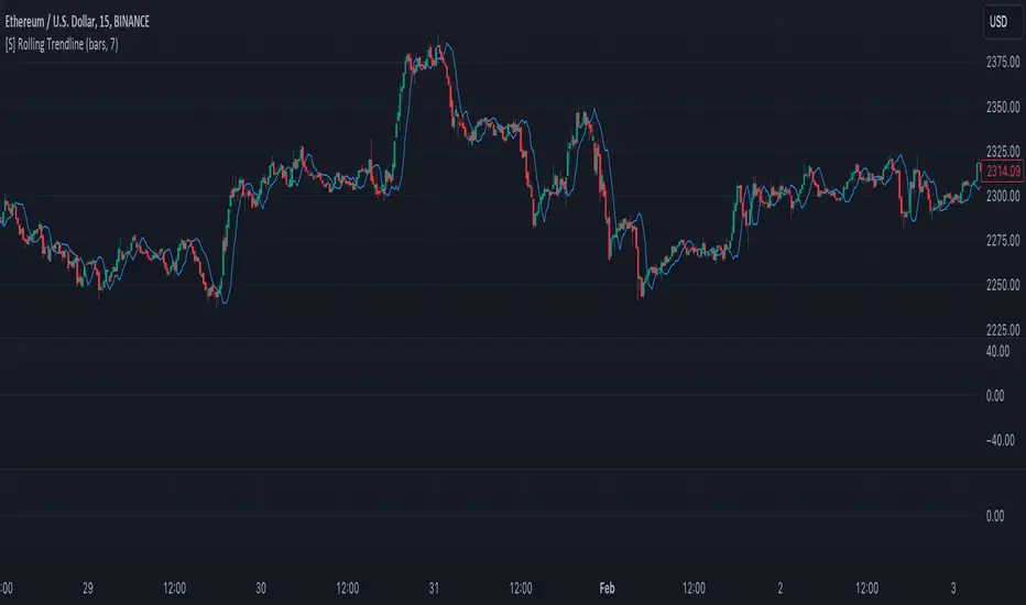 The Rolling Linear Regression Trendline is a sophisticated technical analysis tool designed to offer traders a dynamic view of market trends over a selectable period. This indicator employs linear regression to calculate and plot a trendline that best fits the closing prices within a specified window, either defined by a number of bars or a set period in days, independent of the chart's timeframe.