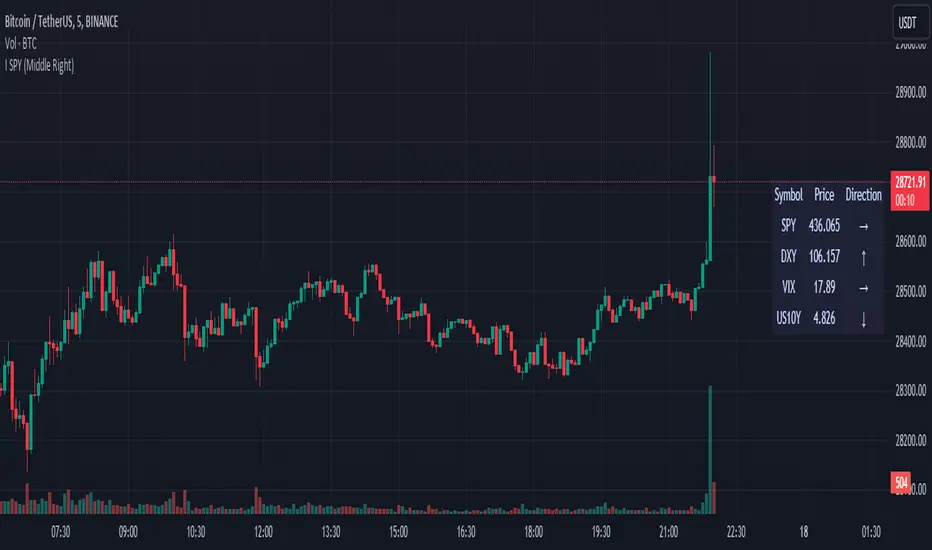 If you like to monitor DXY and VIX while trading SPY this tool is for you. It gives you the price of all three and the direction they are going based on a smoothed derivative. This should help you make trading decisions based on this strategy of monitoring the three much easier as you get a small box on your chart. You can change the location of this on your chart to! I know its a small release but I hope you can find great use with this!