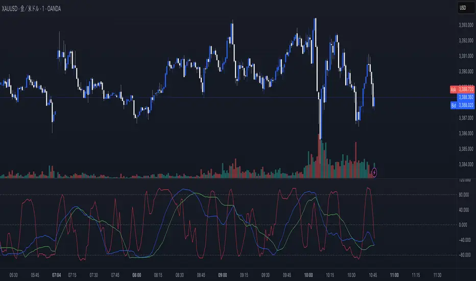 This indicator displays three RCI (Rank Correlation Index) lines with different periods—short-term, medium-term, and long-term—simultaneously.