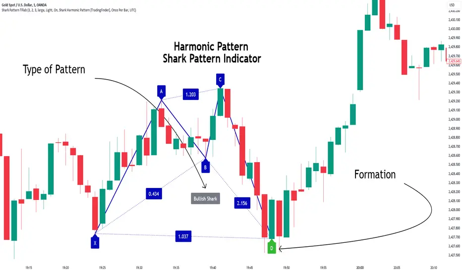 Shark Harmonic Pattern [TradingFinder] Shark Detector Indicator