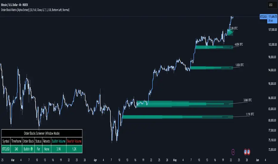 The Order Block Matrix indicator provides traders with powerful insights into market structure, helping to identify key levels where smart money is active and where high-probability trading opportunities may exist.