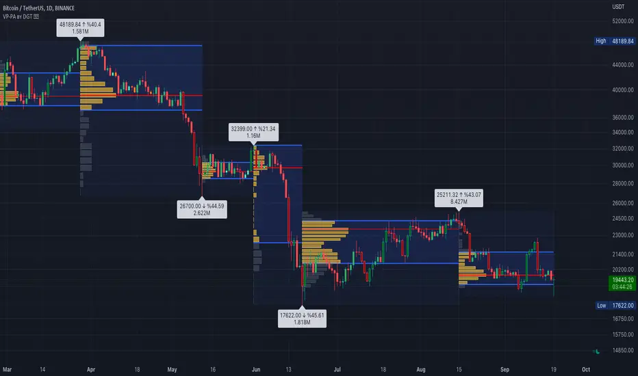 Volume Profile (also known as Price by Volume ) is an charting study that displays trading activity over a specified time period at specific price levels. It is plotted as a horizontal histogram on the finacial isntrumnet's chart that highlights the trader's interest at specific price levels. Specified time period with Pivots Anchored Volume Profile is determined by the Pivot Levels, where the Pivot Points High Low indicator is used and presented with this Custom indicator
