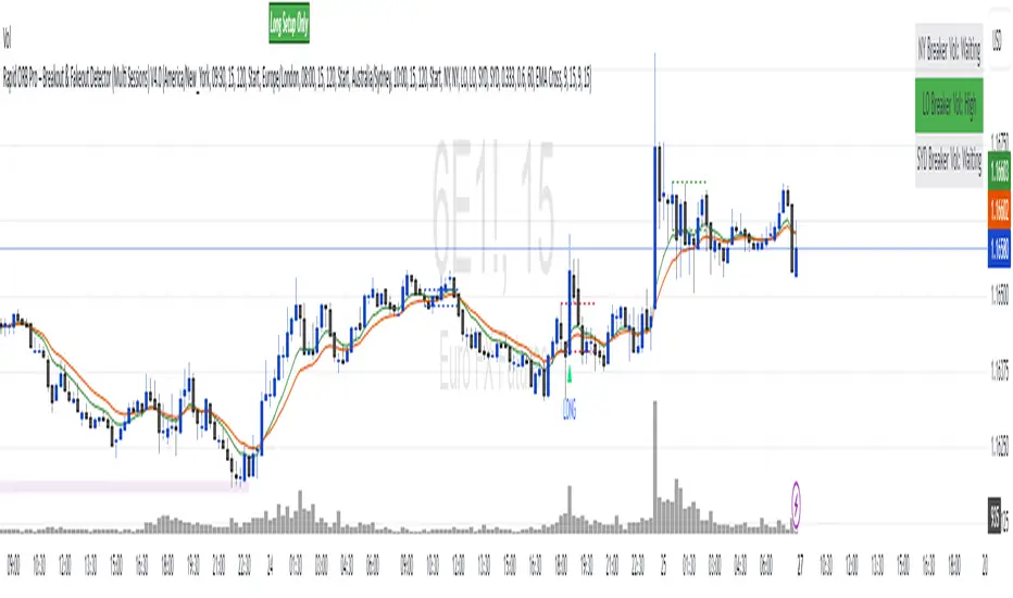 The Rapid ORB Pro indicator is designed to identify opening range breakouts (ORB) across multiple sessions and confirm whether the move is valid or a likely fakeout. This tool works on any asset and timeframe where range trading is relevant. Also coded in a way to tackle daylight saving issue around the world.
