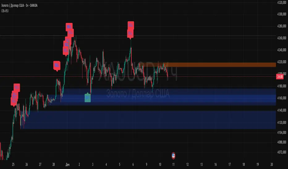 Order Blocks + RSI Signals (v6) — bu bozor strukturasini va momentum signallarini birlashtiruvchi kuchli texnik analiz indikatori. U ikkita asosiy komponent asosida ishlaydi: