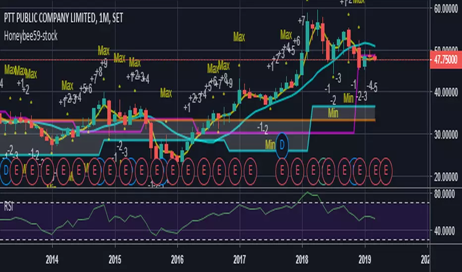 Honeybee59-stock for TradingView gives you abilities to see the stories hiding in the graphs of stocks. It counts CC59 and creates respectable support and resistance levels as well as marks and reminds you about important parameters that are happening in the graph so that you will not forget to consider them before placing orders. This set of tools is a simplified version of Graph Reader Pro for TradingView customized for planning your investments in stocks.