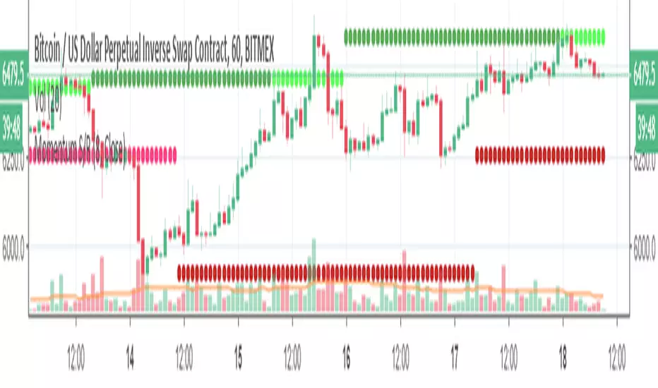 A momentum based approach to finding support/resistance, with the S/R lines changing color if price action confirms it as support or resistance.