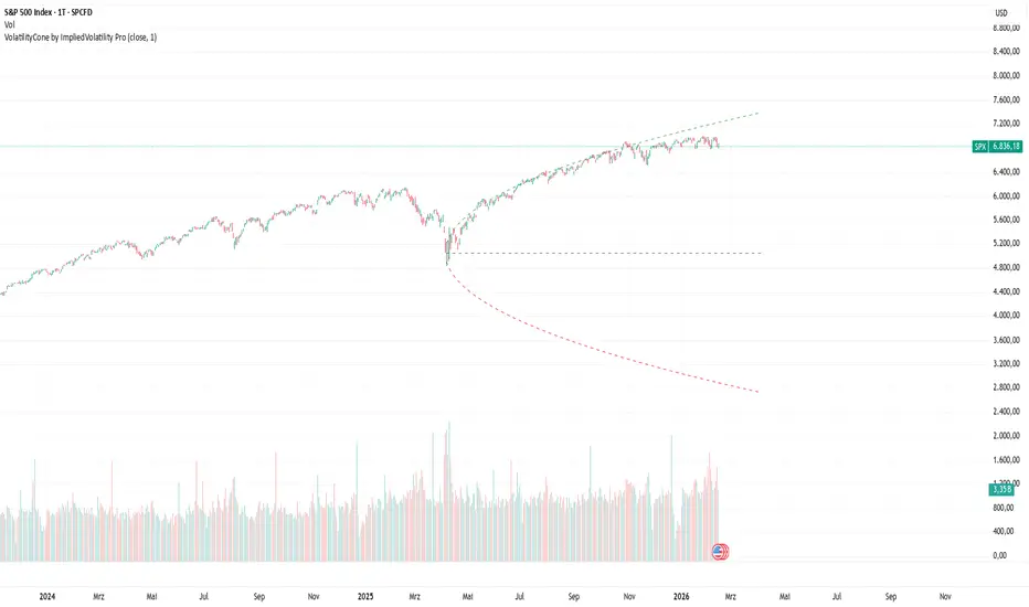 VolatilityCone by ImpliedVolatility Pro draws a volatility cone starting from a date you choose. The cone shows a realistic price range the market could move within over time, based on implied volatility.