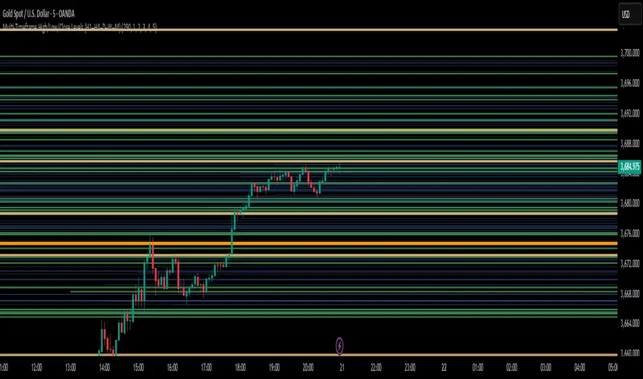 Multi-Timeframe High/Low/Close Levels (H1–H4–D–W–M)