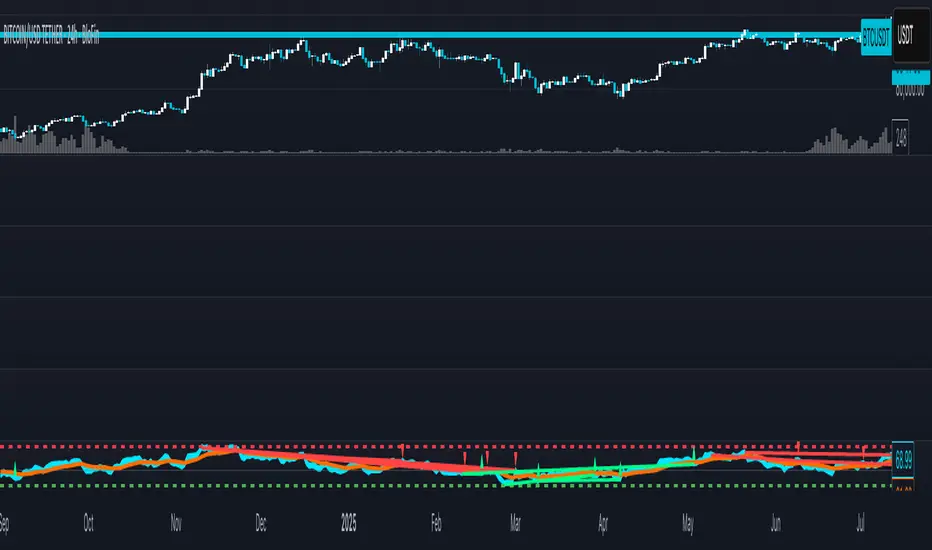 Detects strong and soft divergences on RSI with clear color-coded lines and labels.