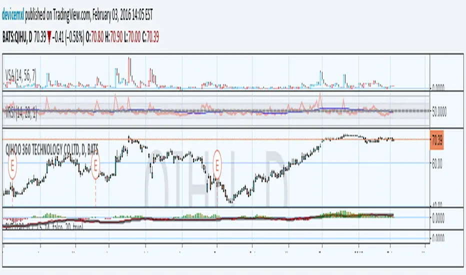 This is a script about the RSI for the Volume Trend, with this indicator we can help us to watch the force of a volume trend (not price). Some times this can help us to clarify the change of the direction.