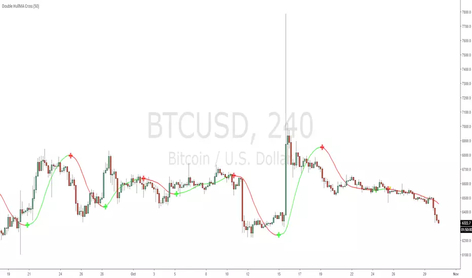 indicator doubles the input value to make the second HullMA value, then marks the crossover