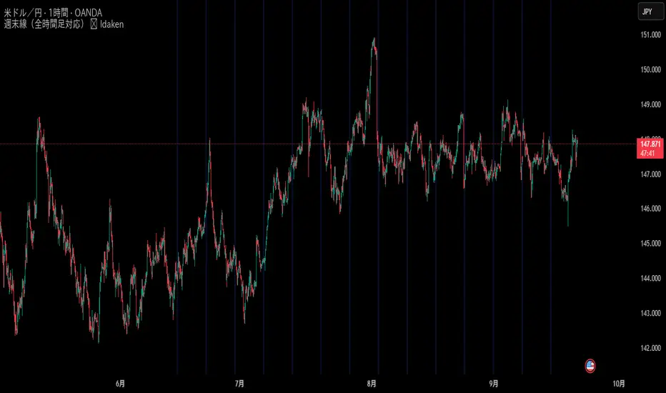 This indicator highlights the entire chart during Saturdays in Japan Standard Time (JST). It is ideal for traders who want to visually distinguish each week.
