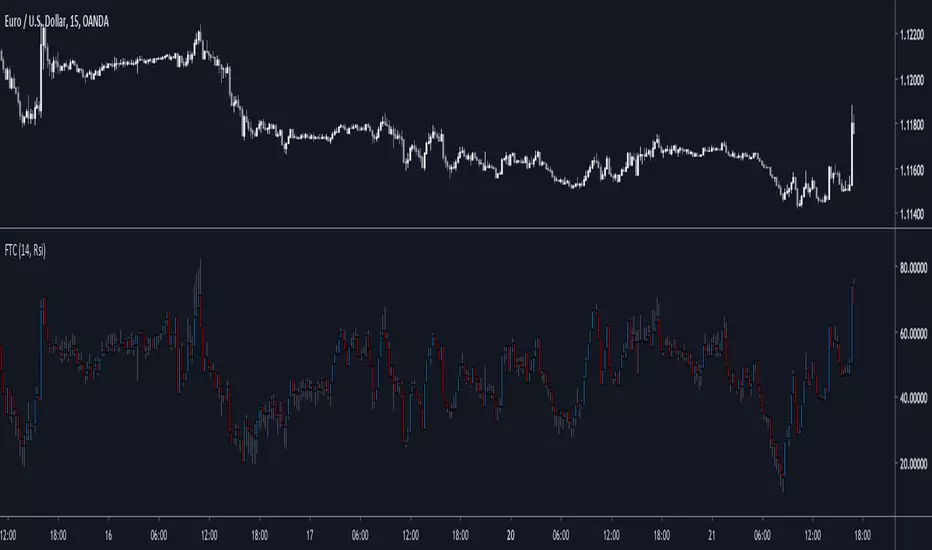 There are different and better way's to see price data, a candlestick chart is one of the best way to see the price since you have access to the open/high/low/close information, this is really efficient and can allow for naked non parametric trading strategies (candlesticks patterns). But what about making candles out of indicators ? There are tons of studies about candlesticks patterns in price data but none (?) about candlestick patterns using indicator data, therefore i made this script in order to show candles from various indicators, i also made an heikin-ashi mode.
