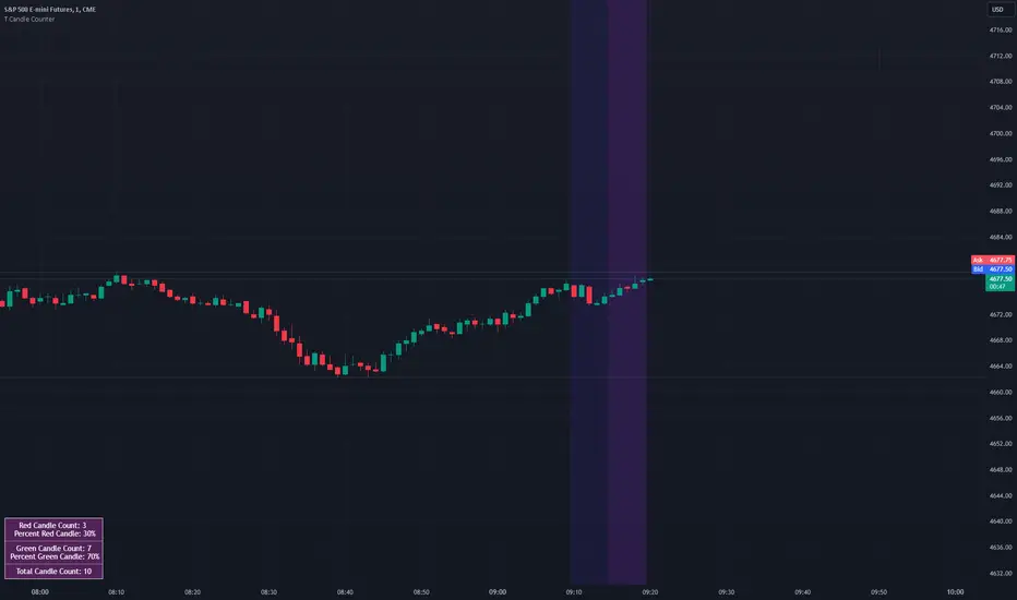 This script is for users who like to monitor and/or analyze a specified number of candles within the time the last candle closed. Al Brooks fans may enjoy this indicator.