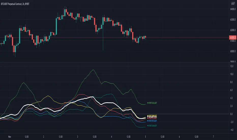 The idea for this indicator is simple: Without a crypto index we want to somehow understand ROC across many assets. This will average out data across the top 5 (current) cryptos and provide a benchmark index.