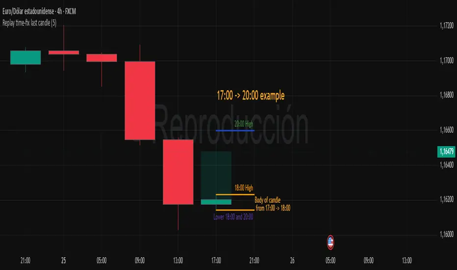 Replay indicator to avoid showing the fully closed last candle on higher timeframes.This indicator displays the last candle up to the current point of the replay instead of the full candle.