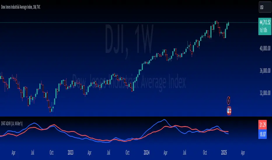 This indicator is designed to plot the Average Directional Index (ADX) and Average Directional Movement Rating (ADXR) on the chart. The ADX and ADXR are both used to measure the strength of a trend in the market. The script allows you to customize several parameters, including the ADX Length and the Moving Average Method used for smoothing the directional movement indicators.