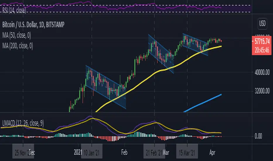 We can clearly see on the LMACD that the indicator is following a trend of lower highs while on the normal MACD such trend is less clear.