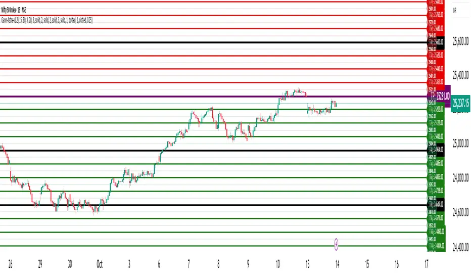 Gann Astra- Single indicator to plot the gann levels for any instruement of any price be it index, future, option, commodity , forex , ETF etc. Just enable autogannfactor to adjust the gannfactor as per the price, the gann levels will be calulcated and plotted, also includes intermediate levels between gann levels. Hope this finds very helpful and there wont be any need to calculate levels manually. ThankYou.