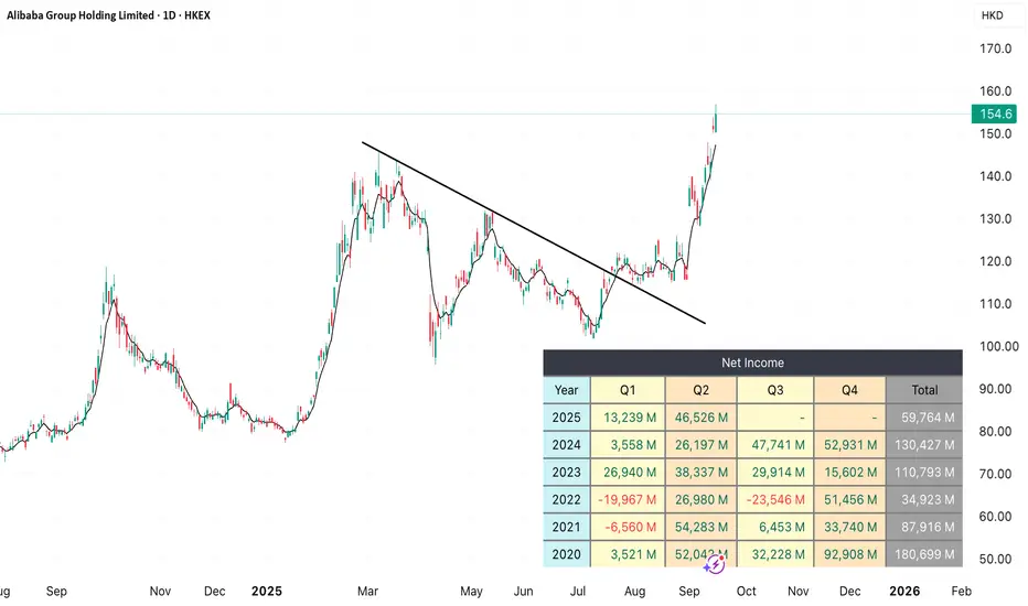 This indicator was created to help fundamental traders analyze historical financial data directly on the chart, eliminating the need to switch between screens. The table displays key metrics for each calendar year, broken down by quarter (Q1-Q4) with an annual total, providing a clear overview of a company's growth at a glance. It is also highly customizable to fit your trading style and chart theme.