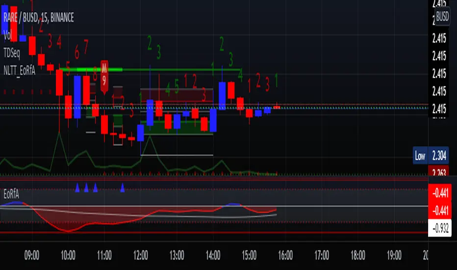 This code shows expected reaction target prices after sudden moving based on RSI. Red area means the price is on overbought area, green area means the price is on oversold area. If you see red area under price, you can make short option to next to the horizontal beginning price of red area. If you see green area over price, you can make long option to next to the horizontal beginning price of green area.