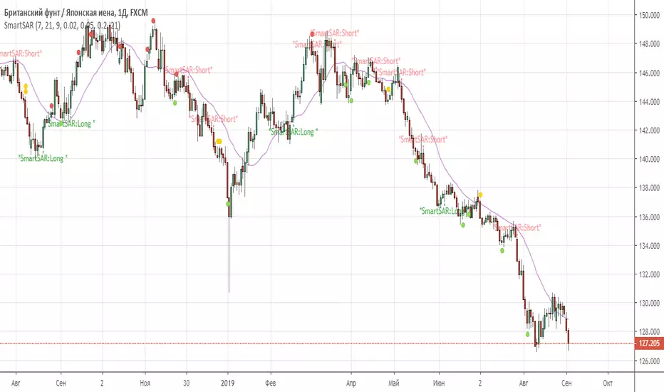 SAR signal filtered by 3 indicators: MACD, AC, RVI.