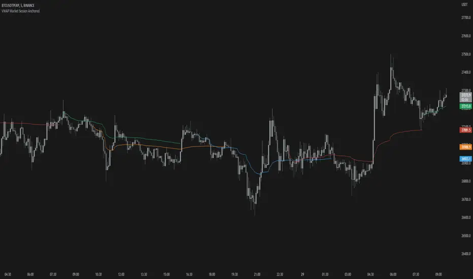 Similar to the traditional VWAP, VWAP Market Session Anchored is a technical analysis tool used to measure the average price weighted by volume. VWAP Market Session Anchored can be used to identify the trend during a specific market session.