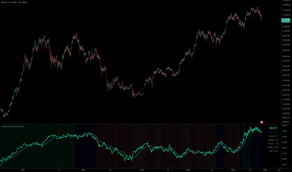 Advanced global M2 money supply monitoring indicator, offering a unique macroeconomic view of global liquidity. Real-time tracking of M2 evolution in major developed economies.