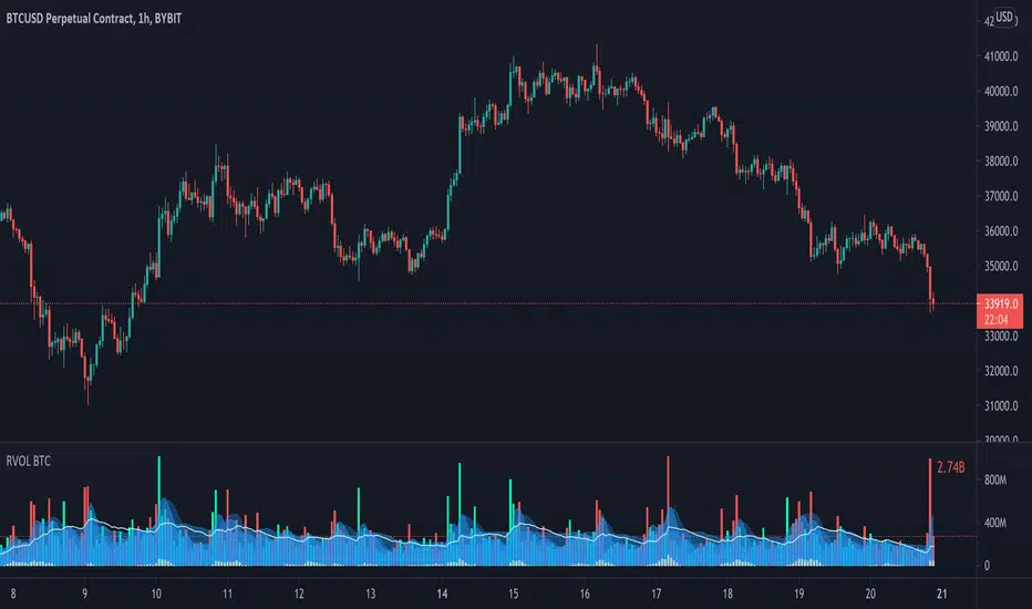 Relative Volume indicator that pulls data from 9 different Bitcoin exchanges. Please note that this indicator only works with BTC and will not use data from your current chart.