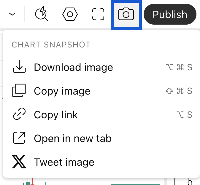 Grafiğinizin üst kısmındaki kamera simgesine basın veya grafiğinizin anlık görüntüsünü almak için klavye kısayollarımızı kullanın.