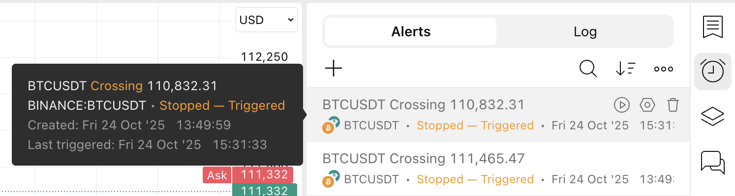 Alarm yöneticisinde, alarm oluşturma zamanının yanı sıra son tetikleme kayıt zamanını da görebilirsiniz. Her ikisi de işletim sisteminizin saat diliminde görüntülenir.