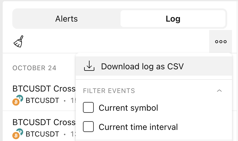 Alarm günlüğü bölümünde, alarm günlüğü verilerini bir CSV dosyasına aktarabilirsiniz.