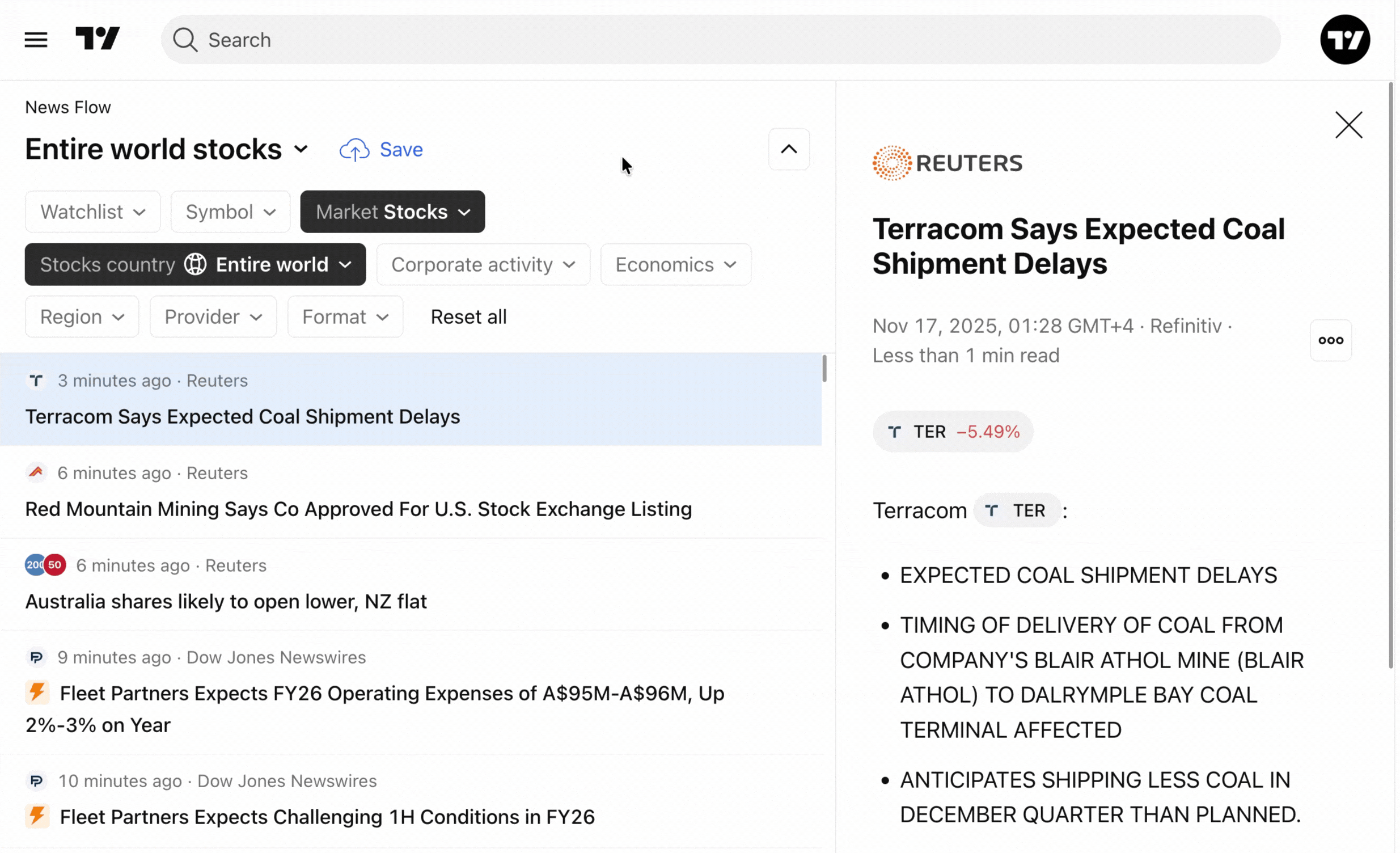 - Seçili akışı değiştirme