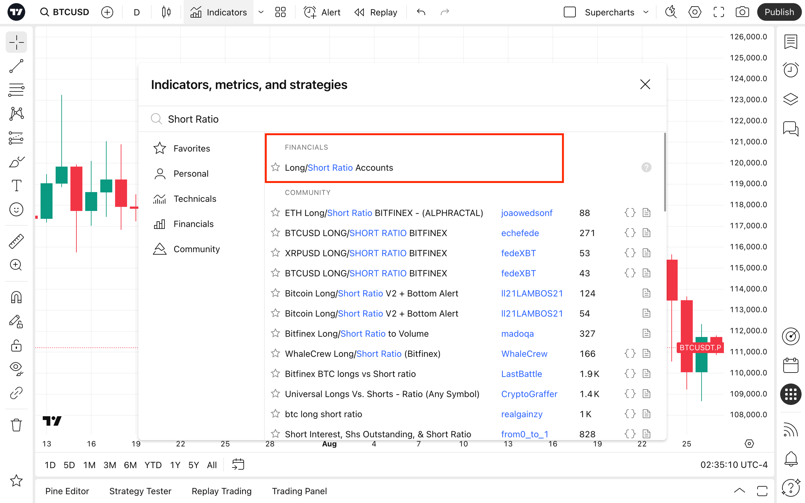 Grafikte, veriler "Finansallar" sekmesinde "Uzun / Kısa Oranı Hesapları" göstergesi olarak mevcuttur.