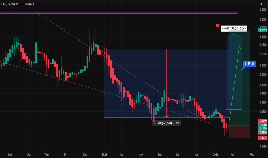 CTK Kisada Sert Yukselisler GelebilirCTK için genel görünümün haftalık olarak pozitif olduğunu söyleye biliriz. BTC düşüş kanal bandından hareketlerinden nisbeten az etkilenen CTK için momentumda artış ve RSI alım bölgelerine doğru hareketlerin ve haftalık periyotta yükselişlerin kademeli olarak gerçekleştiğini görüyoruz.
