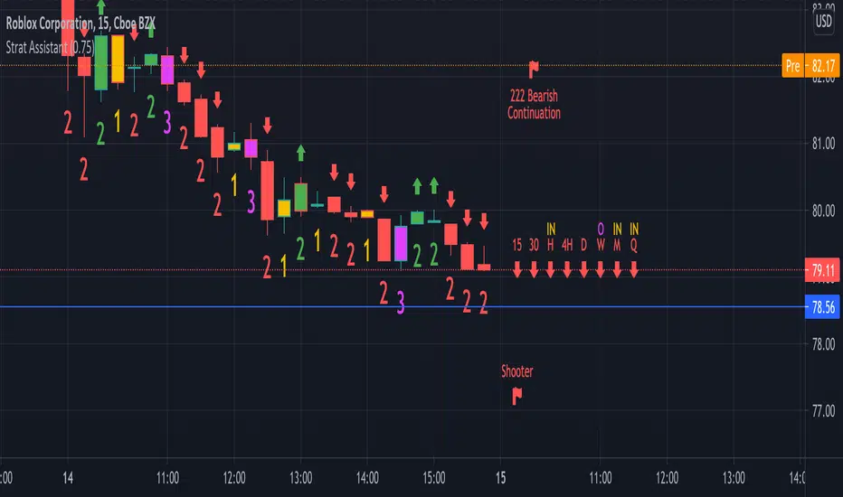 =Strat combos: will provide a text description of all currently applicable strat combinations if they are active at the top right of the chart. It will display red if it's bearish and green if it's bullish.